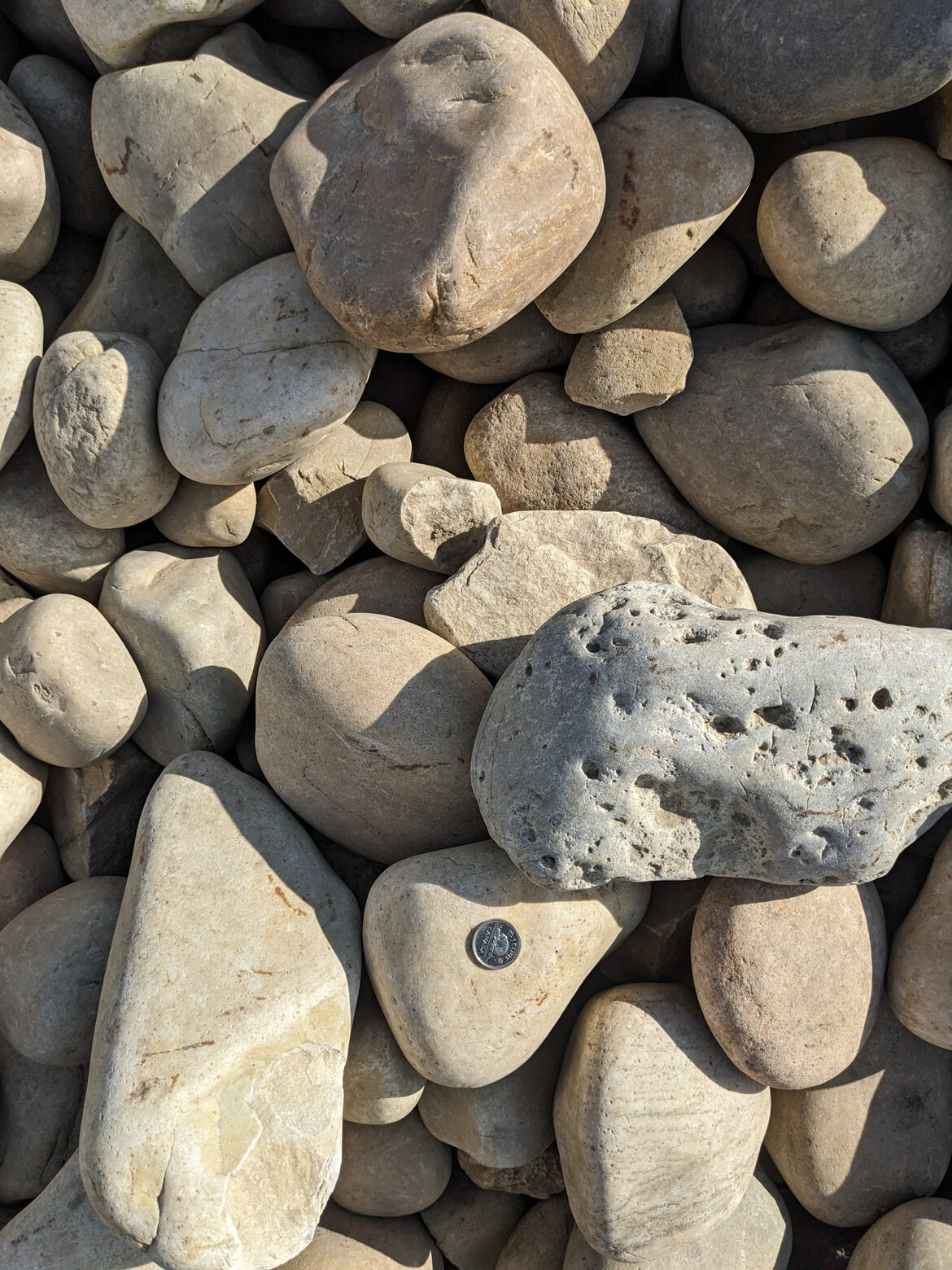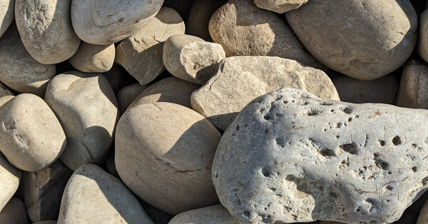 Smooth rounded stones ranging in size from approximately 4" to 8"